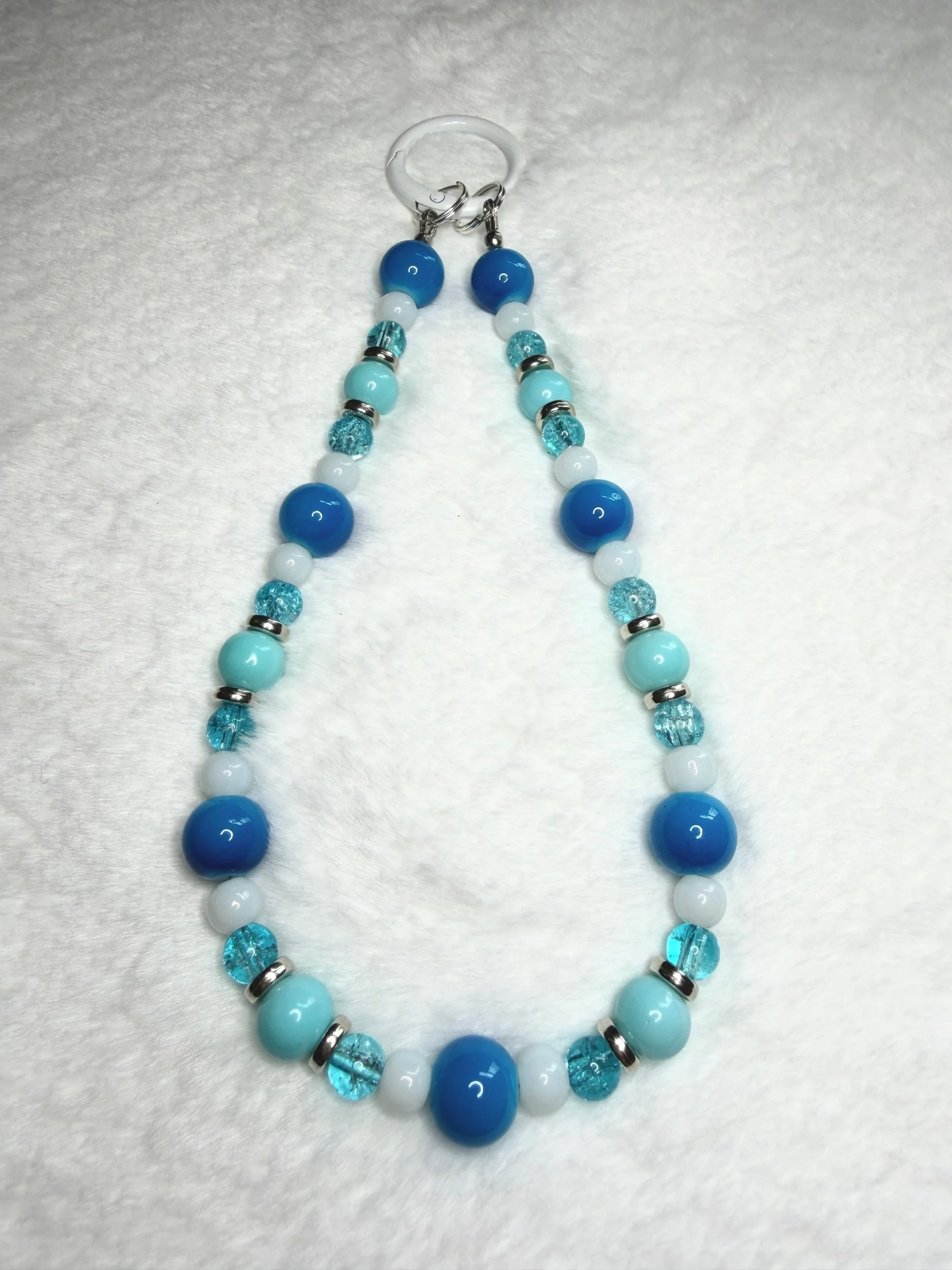 The Tidal Whisper Wristlet carries the calm strength of ocean magic. Shades of aqua, ice blue, and deep tidewater swirl together in a gradient that feels like waves rolling over smooth stones. Faceted crystal beads add a flash of light, like sunlight dancing across the surface of the sea, while silver accents give the strand a sleek, enchanted finish.